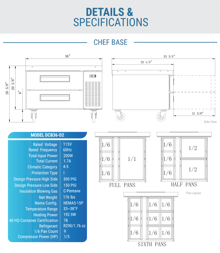 Dukers DCB36-D2 36" Chef Base w/ (2) Drawers - 115v