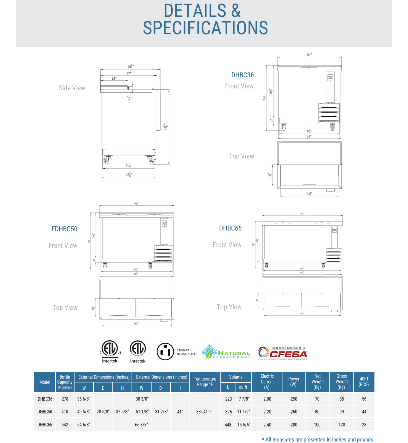 DHBC65 – 542 bottles, Can hold 22.5 cases of 12-oz. bottles or 30.6 cases of 12-oz. cans